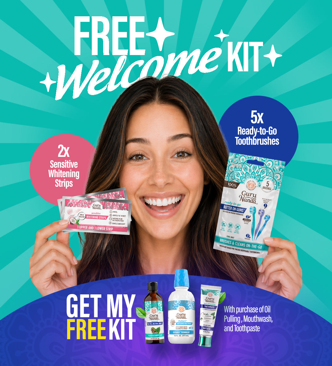 Complete your oral care routine with GuruNanda's whitening strips for a dazzling smile in just one week!