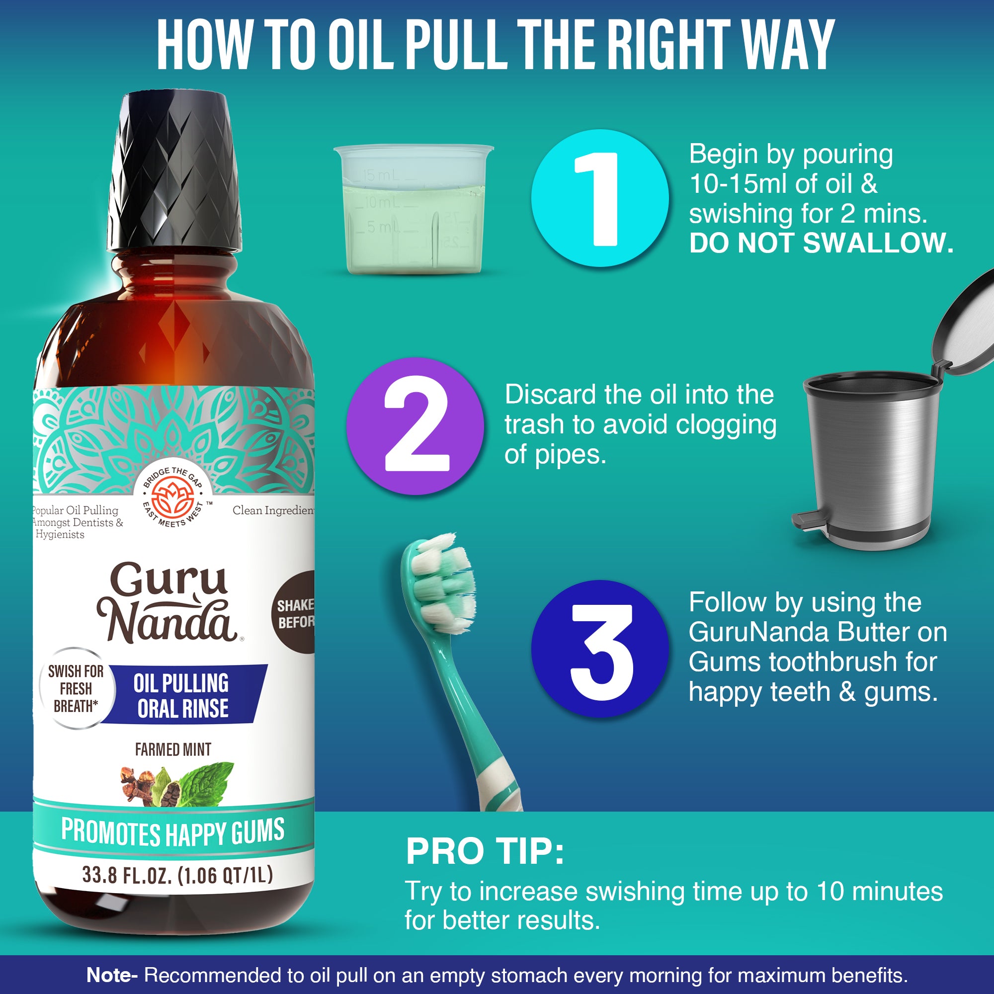 - Brush: Brush your teeth with GuruNanda Butter On Gums Toothbrush to complete the routine.